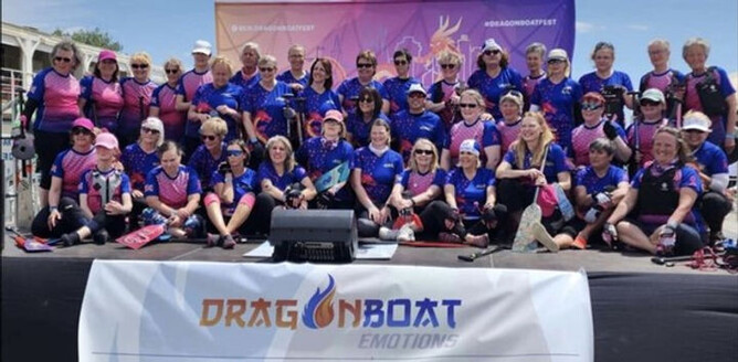 The Go Europe Pink Dragons most enjoyed getting in touch with many pink paddlers from around the world (Canada, England, Ireland, Italy, Northern Ireland, Spain) – 16 teams competing in small boats, but also spending time as a team including the Pink Royals composite team, visiting the city, and crying together at the beautiful flower ceremony.