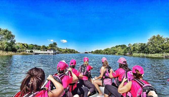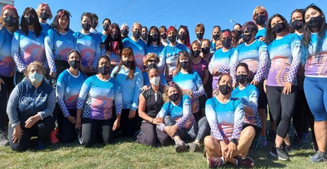 The exponential growth of women with a history of Breast Cancer who continue to join this international movement is notorious. From the water, or through concrete actions in the community, particularly in Argentina, carrying a strong and clear message of personal improvement, group work and awareness of the importance of early detection of breast cancer.