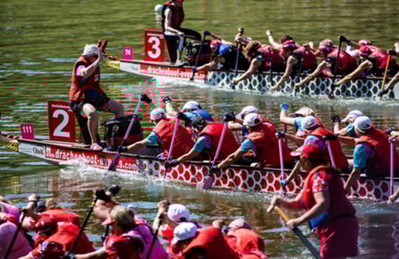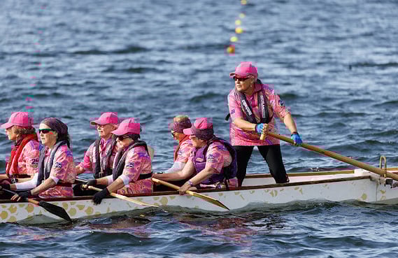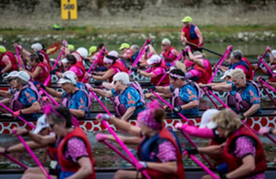 Breast cancer dragon boat paddling began at the University of British Columbia, in Vancouver, Canada in 1996. Dr. Don McKenzie, a Professor in the Department of Sports Medicine and exercise physiologist challenged the prevailing medical thinking that women treated for breast cancer should avoid rigorous upper body exercise for fear of developing lymphedema, a debilitating and chronic side effect of treatment.Read more...