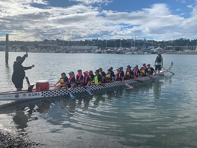 I was fortunate enough to go to Hawkes Bay to see the beautiful new boat “Kaha”. Kaha was the name of the mascot for the New Zealand festival, which was gifted to the Dragonboat team there to help to grow the sport, and to help grow breast cancer paddling. The trust that organised the festival has also gifted another boat, three ergometers, a storage container and is subsidising the breakfast for breast cancer survivors at the New Zealand nationals and providing the flowers for the flower ceremony along with continuing to share the message of exercise is medicine.