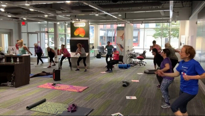 Our team has 3 certified fitness instructors. Ellen and Carol lead classes locally while Georgianna (who lives in Bradenton, Florida), offers workouts via Zoom 3 mornings a week. Our workouts focus on flexibility, upper and lower body strength, core strength, and cardio. We offer weight training, abs, butts and thigh focused workouts, and cardio workouts in various formats including HIIT workouts (High-Intensity Interval Training).