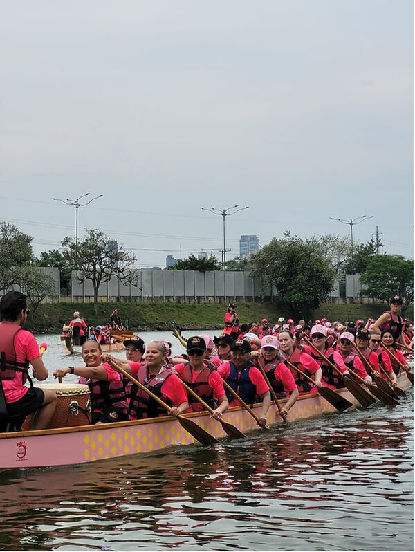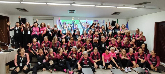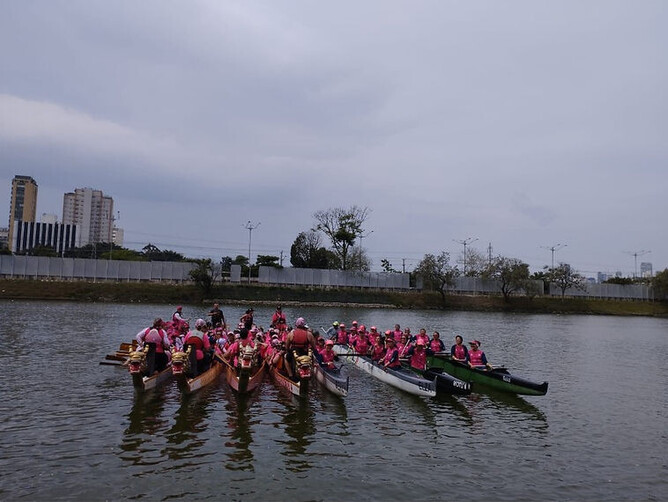 The meeting was attended by female paddlers from all over Brazil (Canomama, Brasília; Dragon Flor de Lotus, from Foz do Iguaçu; Kaora, Santos; Dragon Tchê Rosa, Rio Grande do Sul; and Uma Uma, São Paulo, besides the host team Remama Dragão Rosa), as well as of national and international experts who addressed issues such as the particularities of performing physical exercises in the care of cancer patients, the impact of physical exercise on autonomic and immunological dysfunction in breast cancer.