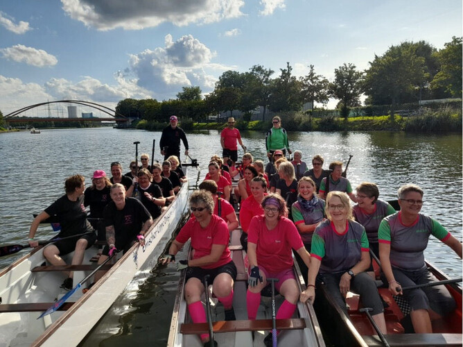 In the weeks of May to June, most of us joined a training session for the very first time, some of us being faced with a fairly recent breast cancer diagnosis. In mid-July, we decided that we would have our very first race end of August in Datteln! So we increased the training frequency from once a week to three times a week.