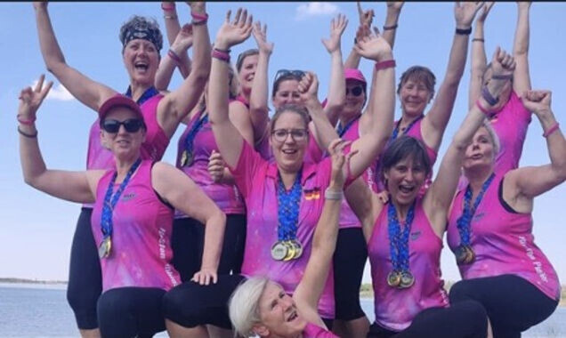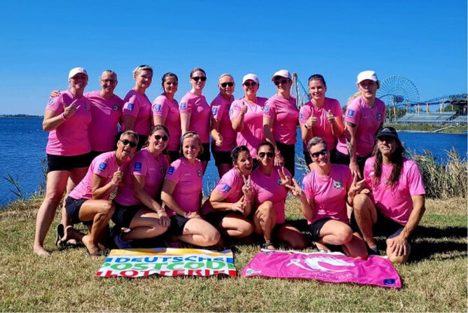 Of course, the Küsten Pinkies and Pink Dragonsitas also wanted to go for Gold, so after a day off to recover from the nerve-wrecking long distance race, both teams qualified for the Grand Final of 8 boats where the Küsten Pinkies celebrated their gold medal for 200m with the Pink Dragonistas finishing second.