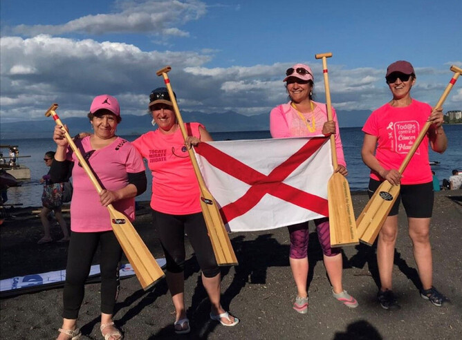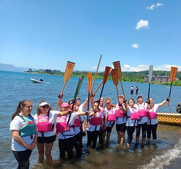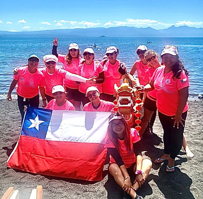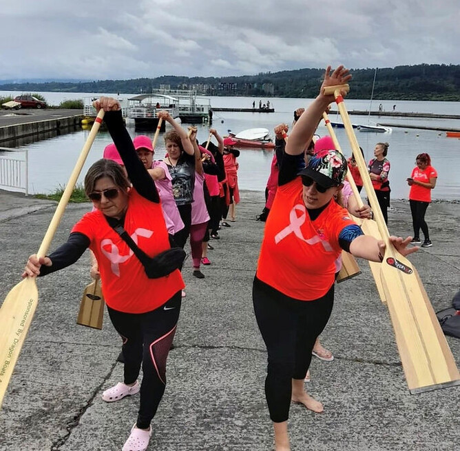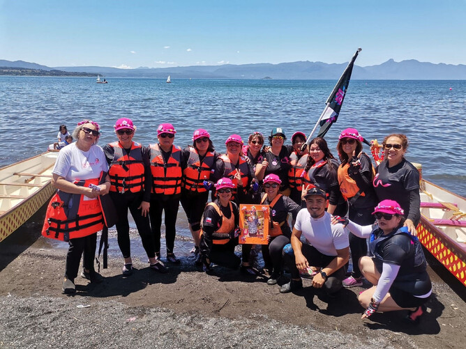 We were 59 paddlers who painted the Villarrica Lake pink, before the competition day, the Fortale-Senos Chile team offered a Dragon Boat clinic, sharing the knowledge already acquired with the new members of the teams, so that the next day they all competed empowered, safe and without risks. The results were incredible, 5 teams of Dragon Boats sailed on Lake Villarrica, some boats with full equipment and others with the addition of the newcomers that were arriving.