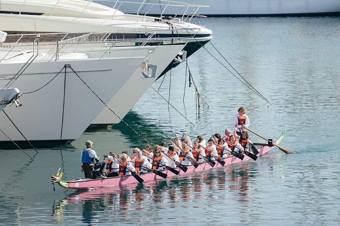 The journey was a long one. Our boat was shipped from Germany on a 17-meter-long truck and traveled for 3 days. Finally, on February 18th, we put our beautiful all pink dragon boat on the water, what an amazing feeling!