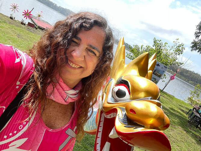 Fundación Azaleas del Parana organized the event, hosted 250 pink paddlers from all over Argentina, and made us feel as like very special guests. On the first day we paddled in kayaks on the Parana River (having a dragon boat is a dream to fulfil). Several of us also enjoyed a refreshing swim. Lunch was a selection of local favourites: "sopa paraguaya", "chipá", and guaraní dishes prepared with "mandioca". Zumba class and folk dances, like the "chamamé" and "ranchera", eased our digestion. Ten different bands played for us the first night. Our paddlers danced to local favourites, Argentine pop music, even Beatles and Luis Fonzi with enthusiasm until long after midnight. The whole town embraced the “pink invasion.” So much fun!