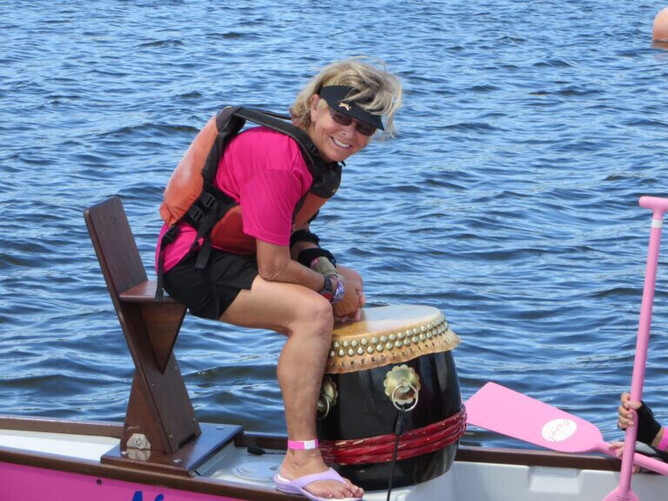With it she founded the Knot A Breast Dragon Boat racing team for cancer survivors. She had to learn to paddle herself and then encourage women, cancer survivors, that if she could do it so could they.