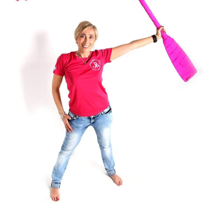 Matilde has rowed in boats and paddled in kayaks from an early age and has competed for her rowing club for 10 years. After her recovery from breast surgery, she heard about IBCPC and pink paddling and she started contacting former patients who had had breast cancer, along with friends and acquaintances and from this Rosas del Plata was formed in July 2015. As she has paddled since the age of 6 it was second nature to her to start the team!