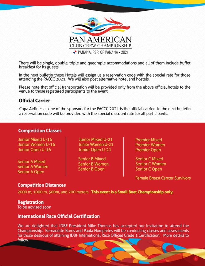 In addition to these countries the organizers will extend a special membership to IBCPC member country teams from Argentina, Brazil, Chile and Colombia. We would like to remind teams that this is not a participatory event, but rather a competitive competition and the usual requirements that teams are very competent, BCS from front to back (including helm/steer) and will have participated in their own countries national championships. In discussion with PADBF there will be waivers to the countries national entry criteria for BCS, as many countries may not have had a paddling season due to COVID-19.