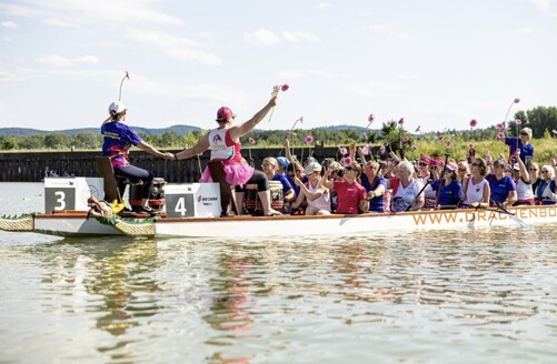 Following the Pentecost visit of a Go Europe Pink Dragons composite team formed of paddlers from Austria, Belgium, Germany, Italy and Switzerland (please read the news and see the pictures from Germany), another Go Europe Pink Dragons team met in Vienna for a reunion, another regatta and a picnic with the Vienna Pink Dragons in June.