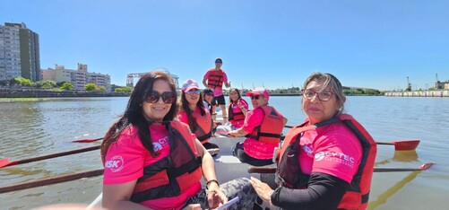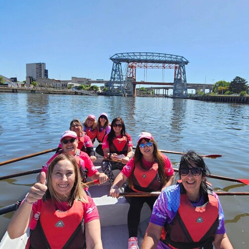 I would particularly like to thank Alejandra Aurora Godoy (Captain of Alas de Agua) for her generosity and love in receiving Remeras Rosas in her boats and at her home. The other great moment of this pink October in Argentina, for Buenos Aires has been particularly mobilizing, since the Government of the City of Buenos Aires has organized, together with the Metropolitan Rowing Federation, we would especially like to thank its president Julia Garisoain,former Olympic rower, with a kind and passionate soul and the Almirante Brown Rowing Club,Vice President Roberto Hugo Naone, the so-called "Riachuelo Rosa" (Pink Creek).