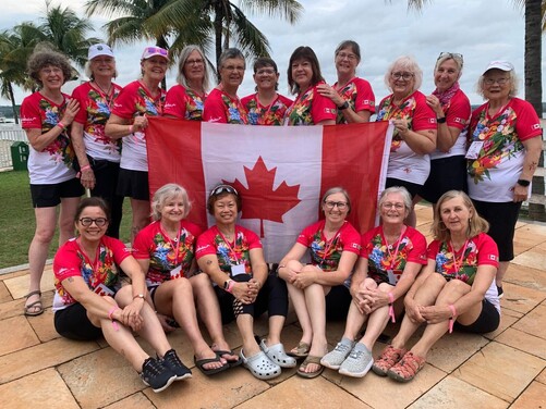 Dr Don McKenzie spoke to participants by zoom, and one of the original participants from the first survivor dragon boat crew, Ester Matsubuchi, was a tremendous inspiration to all the paddlers as she actively paddled as part of the Canadian crew.