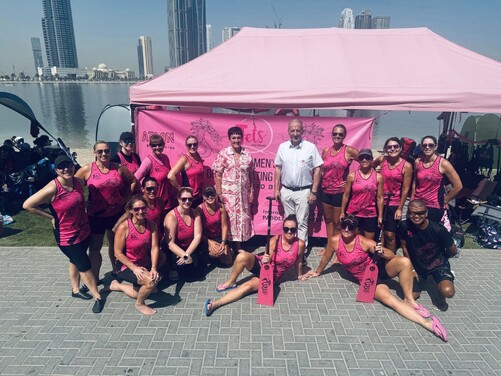 The championship was organised by the Sharjah International Marine sports club which is a phenomenal organisation with a dedicated women’s sports club. I was able to have conversations with the media and communications manager and strategic planning manager, who all are extremely interested in furthering the cause of breast cancer Dragon boating in the region. They are very keen to hold a major event there.