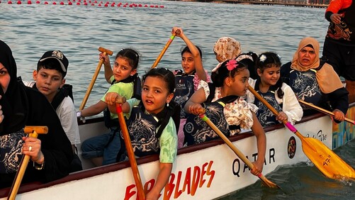 Three other teams sent representatives to help us out and we borrowed two of their boats and equipment to accommodate everyone and set out at one time. We really are blessed to have such a loving community here in Qatar. The other teams are always willing to join in our events, help us lift our heavy boat into and out of the water, as well as steer or even coach for us when we need extras.