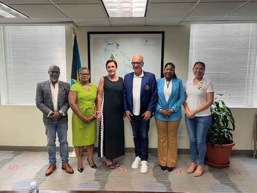 From Australia it was a quick return trip to Auckland to turn around and hop on another flight to go to LA overnight and then onto Miami and the Bahamas. The flight was almost cancelled as there had been lightning prior to landing in Miami but we got there. This was my fifth trip to the Bahamas and you might ask why? This trip was by invitation of the Bahamas Dragon Boat Federation. The reason for being so interested in this region is that it is strategic to IBCPC and its development. Of our over 400 teams over 200 of them are based in this region from North America to Latin and South America. We see Central America becoming a strategic hub particularly to develop festivals and championships in between our four yearly participatory festivals. The Bahamas visit saw me accompanying the President of IDBF. We met with representatives from the Prime Minister’s office, officials from the Ministry of Tourism. the Minister of Youth, Sport and Culture, the Chinese Embassy representatives to discuss the economic and social benefits of dragon boat events in the Bahamas and the wider region. We also met with the Bahamas Olympic committee and it was particularly noted by them how important it was that I was there to represent breast cancer paddling and in being instrumental in starting dragon boat programs in the Bahamas. There is a strong possibility for having international training camps there also as a strategic base in the region.