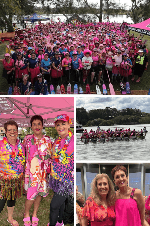 As always, it has been a busy few months since the last newsletter. I was invited to the Gold Coast Australia for the Dragons Abreast Australia (DAA) Pink Paddle Power (PPP). What a fantastic event, there was so much pink, it was pinker than pink. We think that Temu would have made a nice little fortune out of the flamingo outfits that everybody was wearing for this event. There were many highlights such as the fantastic paddling, watching the flower ceremony, the meet and greet evening, the partying on the Saturday night and being invited to attend the DAA strategic planning workshop and the convention workshop. It was fabulous to see what this group is doing and how they are supporting their cohort of paddlers particularly in bringing together six composite teams to attend the festival in France.