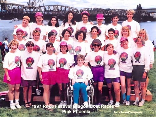 In 1997, our founders chose a name that symbolized hope: the pink ribbon of breast cancer awareness and the phoenix rising from the ashes. As Pink Phoenix begins our 30th season on the Willamette River, our hope is renewed and we recommit to our mission - to empower breast cancer survivors through the sport of dragon boating.